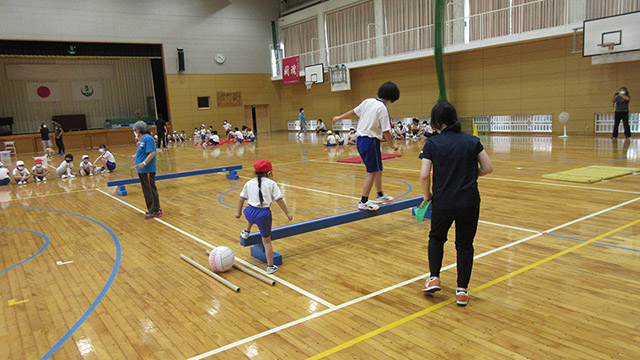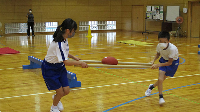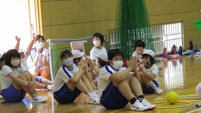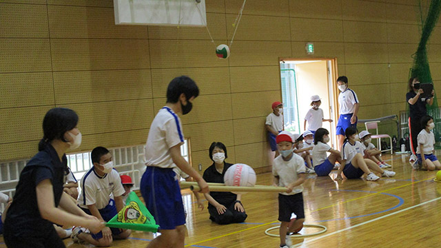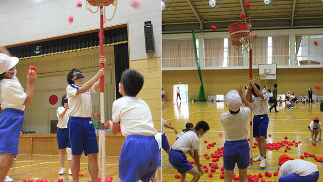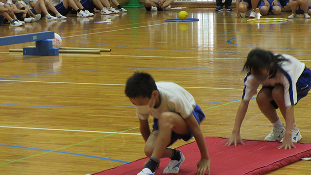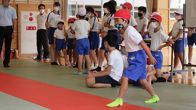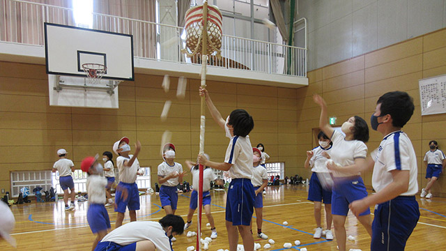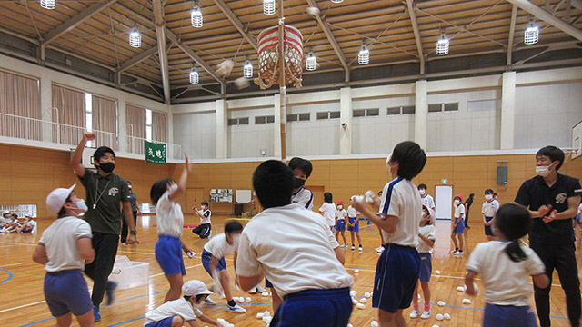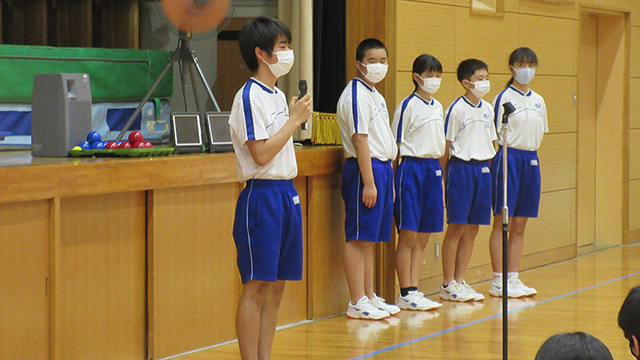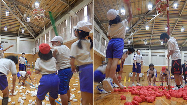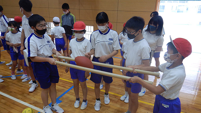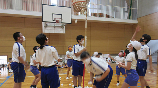 今年度はじめて「縦割班レクレーション」を行いました。健康体育委員会が中心となり、ミに運動会のような形で1~9年生みんなが楽しめるレクレーションを実施しました。 相手チームと競い合ったり、大笑いしたり、仲間を応援したりと、子ども達の生き生きした表情がたくさん見られました。